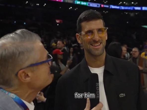 "Ovde sam da uživam u košarci, sportu koji mnogo volim. Naravno da podržim veličine kakve su Lebron i Nikola Jokić", rekao je Novak Đoković u razgovoru sa Vikom Lombardijem, a zatim dodao: "On je veliki. On je jedan od najboljih sportista koje imamo u istoriji srpskog sporta. Ono što on radi u poslednje tri godine je neverovatno, ne samo za srpsku košarku, već i za evropsku košarku. Igrati u najjačoj košarkaškoj ligi sveta... On je neverovatan, volim ga, volim ga kao osobu i on dolazi..." U tom trenutku Nikola Jokić je prekinuo razgovor i usledio je zagralj dvojice srpskih sportista! Pogledajte: