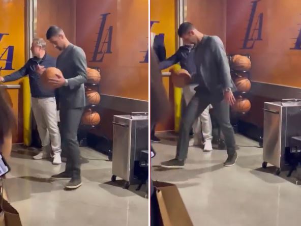 Snimak koji kruži društvenim mrežama pokazuje kako Novak Đoković negde u hodnicima dvorane koju koriste Lejkersi, u odelu i nimalo zagrejan za to, izvodi košarkaške driblinge. Dva puta je najbolji srpski sportista promenom kroz noge prebacio loptu iz jedne u drugu ruku, a kamere su zabeležile taj detalj. Pogledajte kako je to izgledalo: