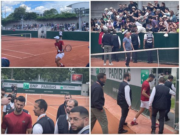 Novak Đoković nastavlja sa pripremama za prvo kolo Rolan Garosa. Na teren izlazi u utorak protiv Pjera Uga Erbera i već je odradio dva treninga. Prvi sa Hamadom Međedovićem u subotu na stadionu "Fiip Šatrije", a drugi na malo zavučenijem terenu broj 4 koji se nalazi na samom ulazu u kompleks. Po završetku svega pratilo ga je i obezbeđenje, a jedan dečak dobio je "packu" po ruci zbog jednog poteza.
