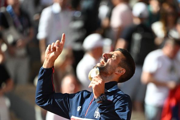 Sa olimpijskim zlatom u ruci, pre poziranja fotografima, Novak je podigao glavu ka nebu i ponavljao "Bog je veliki. Bog je veliki. Bog je veliki". Posle meča, na konferenciji za novinare govorio je o tom detalju. "U tom trenutku rekao sam 'Slava Bogu'. To sam govorio. Najvećem svevišnjem, kome sam zahvalan", objavio je Novak posle meča taj svoj postupak.