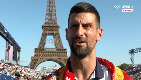 Posle spektakularne ceremonije u centru Pariza, pred Ajfelovom kulom, Novak Đoković je ogrnut u srpsku zastavu veoma uzbuđeno govorio o svemu što je doživeo u poslednja 24 sata, koliko je olimpijski šampion.