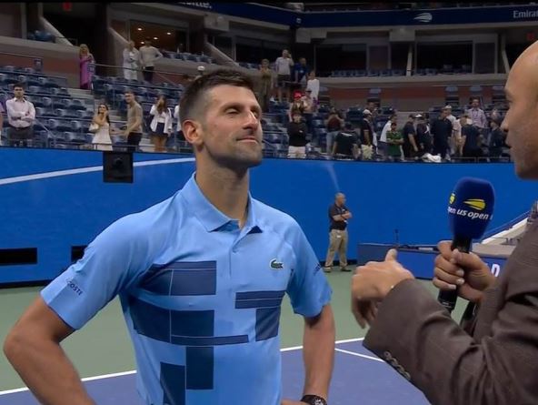 Kada je došlo vreme za intervju na terenu otkucala je ponoć, a Đokovića je intervjuisao njegov stari rival Džejms Blejk. Upravo je protiv Blejka u Pekingu 2008. godine Đoković osvojio prvu olimpijsku medalju, pošto je tada osvojio bronzu. Odmah mu je rekao Amerikanac da je oborio rekord i da sada ima najviše pobeda u istoriji na "Artur Ešu".