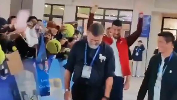 Sada smo videli scenu u Šangaju koja je oduševila sve navijače. Novak se pojavio u holu pred okupljenim fanovma koji su imali spremne desetine i stotine loptica, majica, papira, postera za potpis najvećeg ikada, a kada su ga videli u hodniku odmah su krenuli da uzbuđeno navijaju.