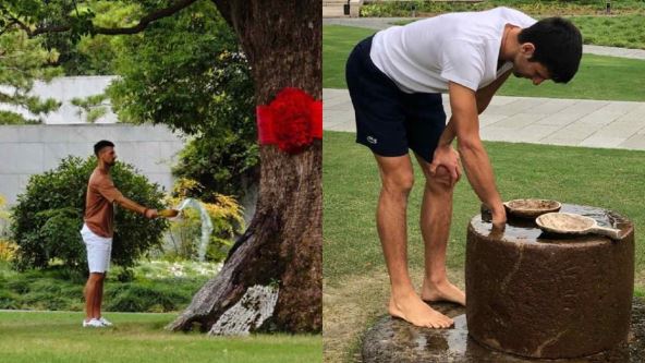 "Drvo sreće se nalazi u odmaralištu u kom ostajemo i to drvo sam zagrlio i sipao sam vodu na njega pre pet godina. Ponovio sam tu malu ceremoniju i ove godine. Neka vrsta rituala za sreću i odavanje počasti neverovatnom životu koje to drvo ima. Znate, ono je staro preko 1000 godina", rekao je Novak.
