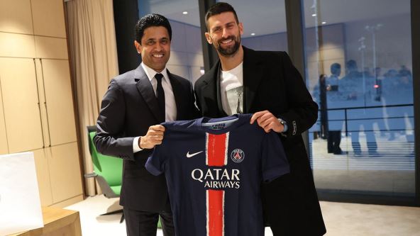 Novak Đoković i Nikola Karabatić na istom mestu. U Parizu! Najbolji teniser svih vremena i po mnogima najbolji rukometaš ikada bili su specijalni gosti fudbalskog kluba. Vlasnik PSŽ-a Naser Al Kelaifi pozvao ih je na otvaranje novog kampusa i trening centra koji se nalazi nadomak Pariza.