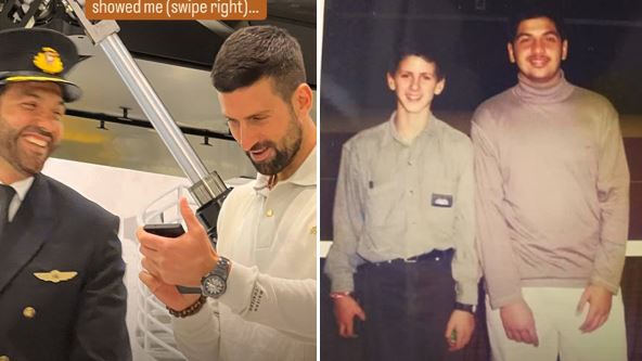 "Upoznao sam pilota... Ispostavlja se da smo zajedno igrali tenis kao klinci. Nećete verovati kakvu mi je fotografiju pokazao...", napisao je Đoković i potom sa svojim pratiocima podelio detalj sa akademije na kome su zajedno trenirali i trudili se da stignu do teniskog vrha: "Nismo se promenili nimalo. Jedan je imao 12, drugi 14 godina na akademiji Nikija Pilića. Ludačka slučajnost, drago mi je da smo se sreli, prijatelju!".