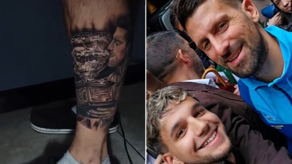 Ovaj mladić je zaustavio Novaka kada je ulazio u teniski kompleks na kome je nastupao, a kada ga je pozdravio morao je da zastane Đoković i za trenutak pogleda u njegovu nogu. Razlog za to je tetovaža koju ima Valentin, a Đokovića je zaintrigiralo šta mladi navijač ima da mu pokaže.