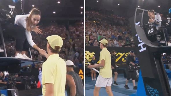 Prišao je Siner našoj sutkinji i pružio joj ruku, na šta mu je ona nešto rekla, a potom je nastavila da mu se obraća. Deluje kao da je Marijana Veljović poručila "moja greška" za jednu od situacija sa meča, na šta Siner nije hteo ni da se okrene.