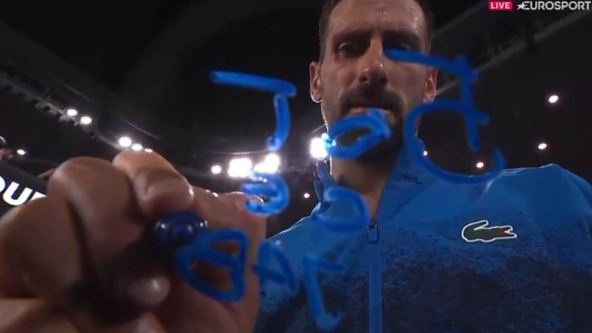 Uprkos svemu tome, nije zaboravio na jedan važan detalj. Pre samog izlaska i odlaska ka svlačionicama Novak je tražio marker da bi ostavio poruku na kameri. Napisao je na ćirilici "Bog se javi".