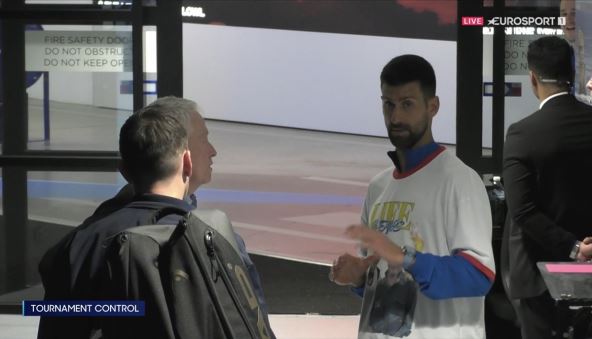 Videlo se da Novak gestikulira i rukama, objašnjava Tajliju zbog čega je nezadovoljan i jasno je bilo da je vrlo ljut i nezadovoljan. Verovatno je bio i nezadovoljan ponašanjem Mohameda Lajanija, čuvenog sudije koji je vodio ovaj meč. Bunio se Novak kod njega i tražio da se sankcionišu neke navijače, ali ga nije poslušao.