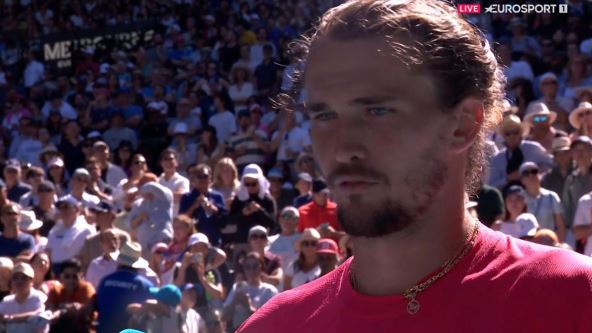 Nije se Nemac radovao previše što je prošao u finale prvog grend slema sezone. Samo je seo na klupu, a onda je dao prvu izjavu Džimu Kurijeru i to tako što je očitao bukvicu sramotnoj publici koja je zviždala Novaku kada je on predao meč. "Prva stvar koju želim da kežem je 'ljudi nemojte da zviždite igraču koji ode sa terena povređen'", počeo je Zverev.