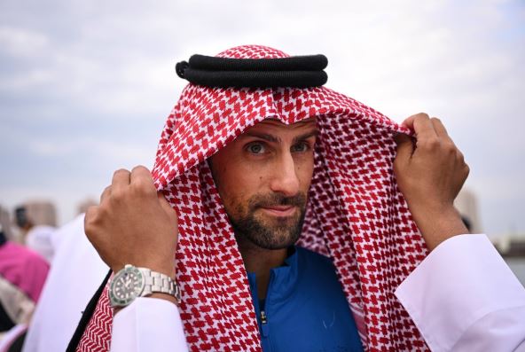 Sve to učinio je na jednom posebnom događaju koji je organizovan u Dohi gde su Novak, Karlos Alkaraz, Grigor Dimitrov i Stefanos Cicipas igrali tenis na pesku i to na kamilama. Bili su obučeni i u njihovu nošnju, pa je i to izgledalo simpatično.