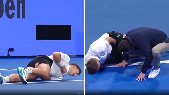 Čuli smo njegov krik, videli smo bolan izraz lica, a odmah su do Hamada dotrčali kako njegov lekar i fizioterapeut, tako i rival. Stigao je i Stefanos Cicipas da vidi šta se dešava i odmahnuo glavom, ali nije odustao srpski teniser. On je nekako prvo došepao do svog mesta, a onda je zatražio medicinski tajmaut. Pogledajte taj momenat: