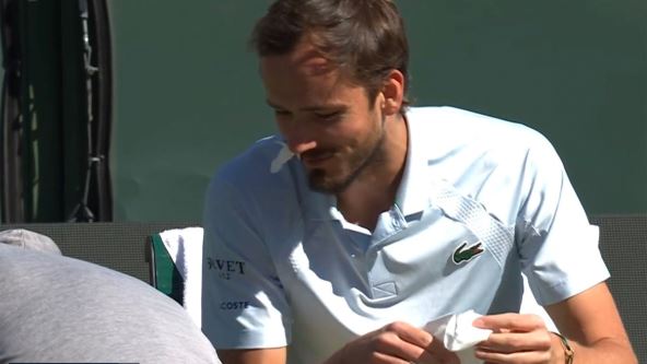 Ruski teniser Danil Medvedev plasirao se u osminu finala Indijan Velsa pošto je na potpuno neobičan način pobedio "izazivača" iz SAD, mladog Aleksa Mikelsena. Iako je Medvedev morao da traži lekarsku pomoć već u drugom gemu, zbog krvarenja iz nosa, ispostavilo se da je Mikelsenu zapravo pozlilo. Predao je meč kada je Medvedev poveo 2:0, dakle posle samo deset minuta tenisa.