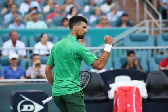 Novak Đoković pobedio je Grigora Dimitrova i prošao u finale turnira u Majamiju - 6:2, 6:3. Boriće se za 100. titulu u karijeri na Floridi i pokušaće da ispiše nove stranice istorije. Njegov čas tenisa "bratku" je sa tribina gledao i Lionel Mesi koji je bio tu sa suprugom Antonelom Rokuzo. Za titulu će igrati protiv boljeg iz meča Tejlor Fric-Jakub Menšik.