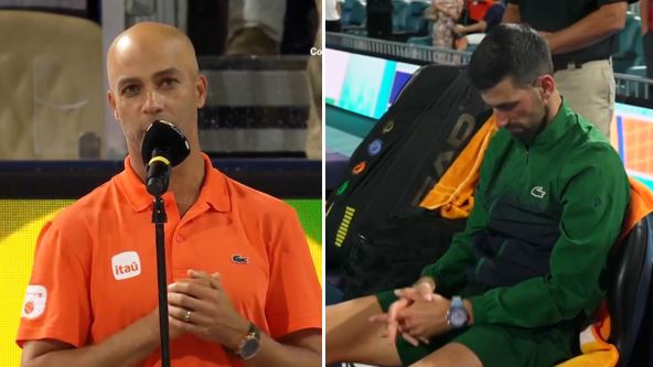 "Novače, pogledaj okolo. Ovo je svedočanstvo onoga što si uradio u ovom sportu, ljudi su 7 sati čekali da te gledaju kako igraš. Imaš 99 titula, svi su bili ubeđeni da će ovde da dođe 'stotka' s obzirom kako si igrao", rekao je Džejms Blejk koji se niti u jednom trenutku nije izvinio za to što je "uticao" na to da Đoković izgubi finale, pošto ga je naterao opet da čeka i čeka, bez ikakve jasne slike da li će i igrati na kraju: "Hvala ti za sve što si uradio u ovom sportu", dodao je Blejk.