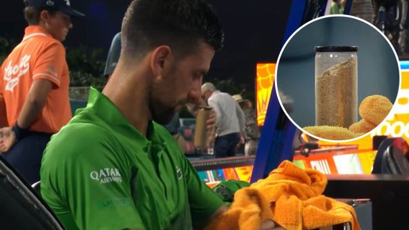 Nole je u jednom momentu tražio pomoć od sudije Renoa Lihtenštajna i preko skupljača loptica je dobio jedan poseban prah ili puder, zavisi kako ko to zove. U pitanju je smeša koja je napravljena od opiljaka, odnosno od piljevine struganog drveta i koristi se kako bi poboljšala stisak reketa.