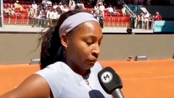 "Doručkovala sam tost sa avokadom i neko voće. Rano je počeo meč, nisam dobro spavala noćas. Možda je ključ da ne spavam mnogo", izgovorila je Koko i u tada je nestao ton. Ona je pogledala ka mikrofonu, pa se okrenula ka publici. Bila je potpuno zbunjena, a onda se i nasmejala kada je shvatila da se ne čuje njena izjava.