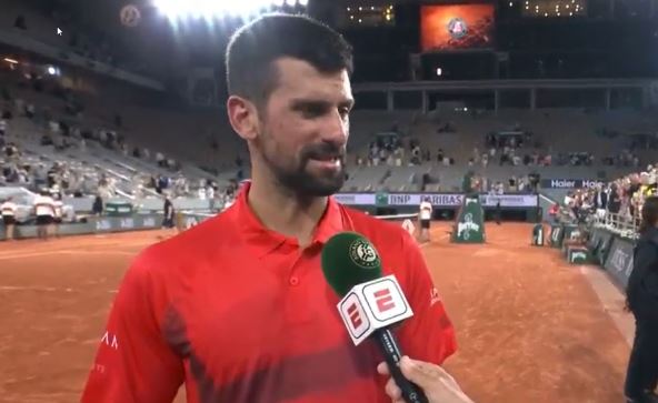 U razgovoru na terenu Novak je reagovao na konstataciju da ima najbolji "Si-Vi" u tenisu i da je ostvario 99. pobedu na Rolan Garosu u karijeri.