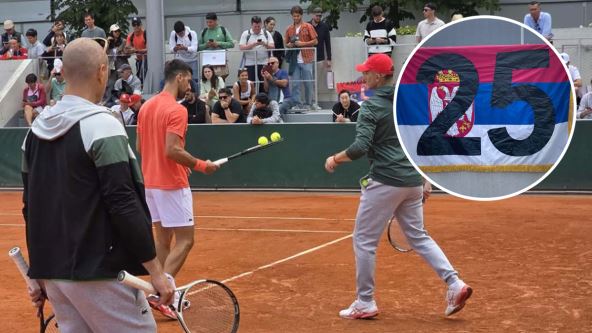 Uz to, na terenu broj 2 kompleksa Rolan Garosa je Novaka dočekalo i iznenađenje od strane navijača. Okačili su veliku srpsku zastavu i napisali broj 25 na njoj. Jasna poruka za Đokovića da veruju u njega i da veruju da može da osvoji 25. grend slem u karijeri.