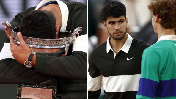 Italijan je imao vođstvo 5:3 u četvrtom setu i tri uzastopne meč-lopte pri rezultatu 5:3 u gemovima i 0:40 i nekako nije uspeo. Alkaraz je tada servirao i uspeo je da se sačuva, a onda i da se vrati u set, izjednači, preokrene i drugi put uzastopno osvoji Rolan Garos.