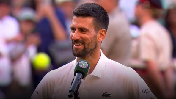 "Izvini, mnogo brojeva imam u glavi. Vimbldon je i dalje i uvek će biti najposebniji turnir za mene. Mnogi igrači su ovde igrali, mnogo mi je drago što i sa 38 godina igram u završnim fazama", izgovorio je Novak.