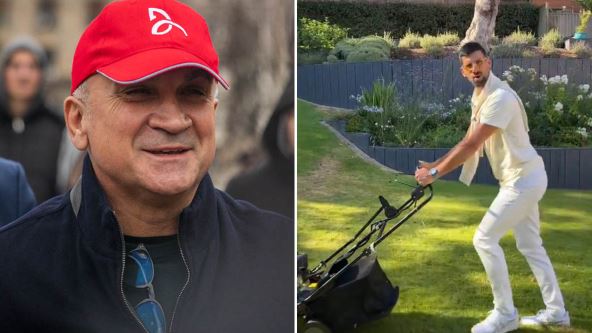 Nole je objavio kratak klip na kom je sa kosilicom, kosi travu i peva "Kosi tata, kosim ja, kosili smo obadva" i to u odelu, sa džemperom preko i naočarima. Snimak je, očekivano, brzo postao viralan.