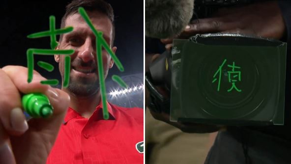 Isprva su se svi pitali šta je želeo da poruči, a zapravo nije uspeo da se seti kako se piše jedan kineski znak "De". Novak je pokušao da napiše svoje ime, ali izgleda da je prošlo previše vremena od prošle lekcije. U svakom slučaju, izazvao je veliko oduševljenje navijača.