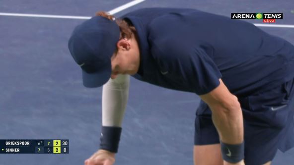 Janik Siner predao je meč na turniru u Šangaju zbog povrede kolena. Italijan se uhvatio za koleno u trećem setu i imao je veoma bolnu grimasu na licu. Pokušavao je na sve načine da ostane u meču, tražio je pomoć lekara, hteo da nastavi, ali nije bilo moguće. Talon Grikspor je prošao dalje.