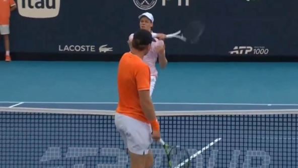 Bilo je to u prvom setu, na Mikelsenov servis, kada je bilo jasno da je mladi Amerikanac izgubio poen. Prišao je mreži i predao se, a Siner je mogao da bira gde će da pošalje lopticu. U tom trenutku raspalio je iz sve snage i udario je Mikelsena, koji nije mogao da veruje šta se dešava.