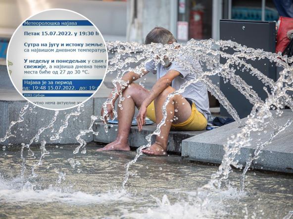 Takođe je saopšteno da nas nakon sutrašnjeg pravog letnjeg dana, očekuje zahlađenje. Pa će tako u nedelju i ponedeljak u svim delovima Srbije biće malo svežije, a najviša dnevna temperatura u većini mesta biće od 27 do 30 stepeni Celzijusa.