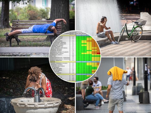 Po ovoj tabeli, maksimalna temperatura u ova dva grada biće u hladu 38 stepeni. Tabelu upozorenja "Batut" je podelio u 4 boje - zelenu, žutu, narandžastu i crvenu. Sve dok se tabela zeleni, vreme je bezbedno po zdravlje.