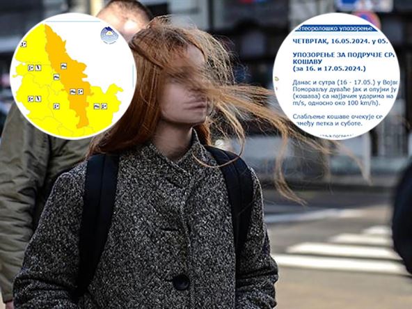 U Srbiji su na snazi dva meteo alarma, žuti i narandžasti. Narandžasti meteo alarm na snazi je u Banatu i Pomoravlju zbog vetra.