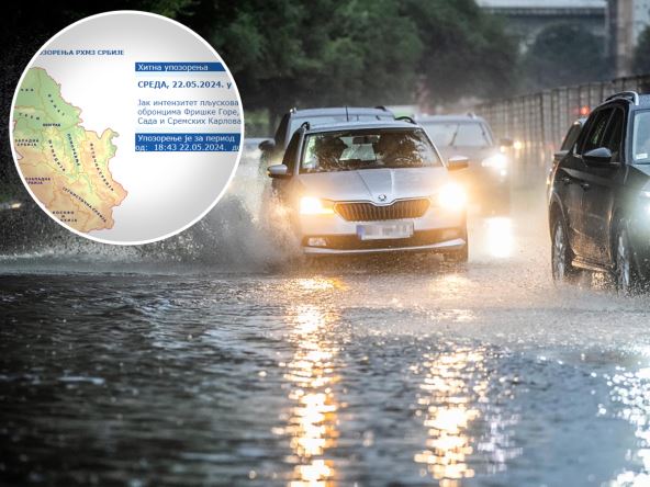 RHMZ je ranije dana sobjavio i upozorenje koje se odnosi na celu Srbiju zbog vremenskih nepogoda koje se očekuju danas i sutra i koje će biti na snazi do 24. maja.