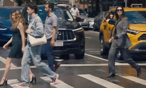 U jednom kadru, dok Endi Saks, koju igra En Hatavej prelazi ulicu u Njujorku, obučena u tamnosivi kostim, crne čizme i velike sunčane naočare - može se videti prolaznica u taksiju kako snima scenu telefonom.