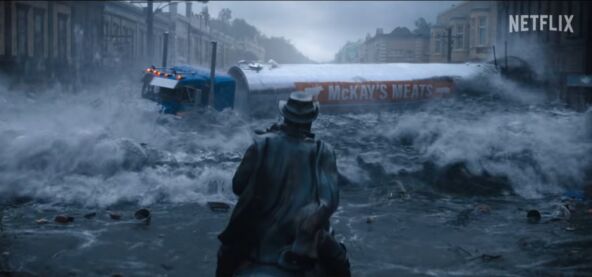 Radnja je smeštena u primorski grad pogođen uraganom, gde se stanovnici suočavaju sa poplavama i opasnošću od ajkula. Glavnu ulogu tumači Fibi Dajnevor, poznata iz serije Bridgerton, kao trudnica Lisa koju porođajni bolovi zateknu usred haosa.