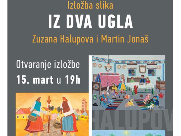 Sa velikim zadovoljstvom Vas pozivamo u utorak, 15. marta u 19h u UK Parobrod na otvaranje izložbe slika „Iz dva ugla“ Zuzane Halupove i Martina Jonaša.