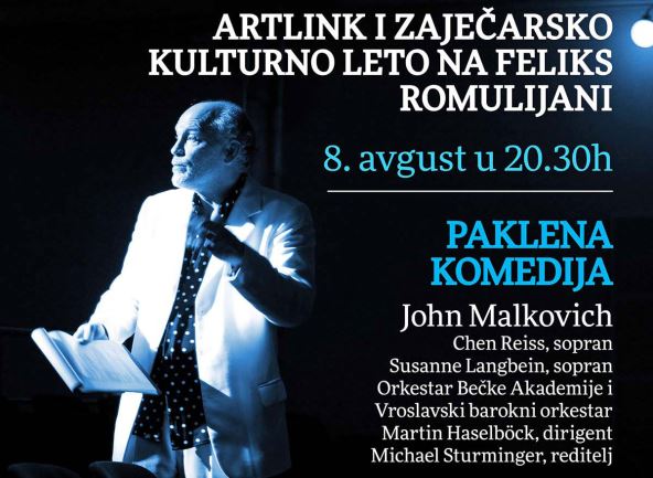 Posle koncerata za sećanje eminentnih svetskih muzičarana na Feliks Romuliani na Zaječarskom kulturnom letu, ove godine jubilarni 10. ArtLink Festival i partneri iz Zaječara predstavljaju Paklenu komediju u izvođenju Džona Malkovicha, orkestra Bečke akademije i Vroclavskog baroknog orkestra sa dirigentom Martinom Haselbekom, sopranima Čen Reiz, Suzan Langbain i reditelj je Mihael Šturminger.