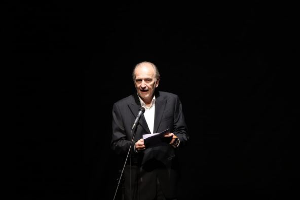 Porodica preminulog glumca, supruga Anita i njegovo troje dece su u prvom redu, a na sceni se smenjuju kolege glumci, prijatelji koji sa svima u sali dele anegdote iz života sa glumcem.