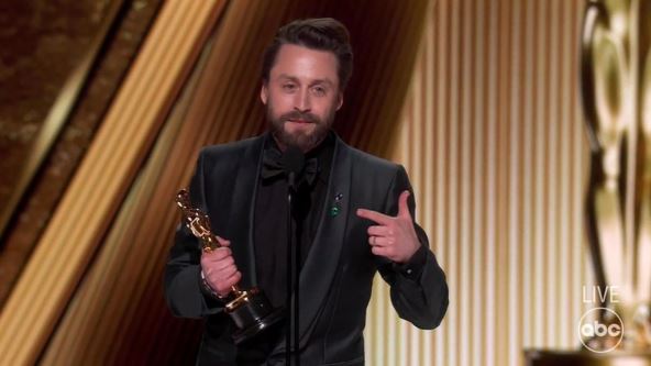 Prvi dobitnik zlatne statue na ovogodišnjoj ceremoniji bio je Kiran Kalkin, koji je osvojio nagradu za najbolju mušku sporednu ulogu. Tokom svog govora, prvenstveno se obraćao supruzi koja je bila u publici, ističući želju da zajedno zasnuju porodicu.