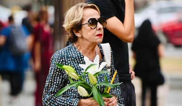 Glumica Iva Štrljić je došla da se oprosti od Vukobratovića s crvenom ružom, tu je i Vesna Trivalić, koja je nosila venac od cveća vidno utučena, kao i reditelj Darko Bajić.