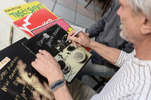 Potom je sredovečni Beograđanin pred Rundeka "istovario blago" - ploče Haustora: "Haustor" (prvi album iz 1981. godine), "Treći svijet" (1984. godine), "Bolero" (1985.) i "Tajni grad" (1988.).