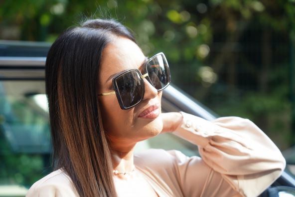Ona je vidno raspoložena izašla iz svog automobila, te pozirala okupljenim fotografima i razgovarala sa novinarima.