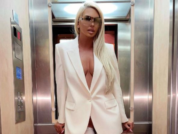 Karleuša je pozirala u beloj odevnoj kombinaciji, sakou ispod kog nije imala ništa, a duboki izrez je otkrio bujne grudi i čizmama koje su joj prekrile cele noge.