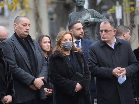 Nakon komemoracije koja je održana u centralnom holu Doma Narodne skupštine, pevačica Ana Bekuta došla je na Novo groblje u Beogradu kako bi ispratila svog voljenog dugogodišnjeg partnera Milutina Mrkonjića.