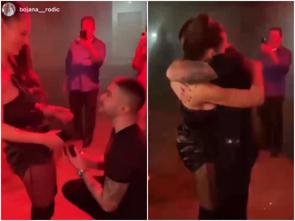 Mirko je uz trubače kleknuo i pitao Bojanu da se uda za njega, a nakon što je ona rekla "da" usledio je poljubac.