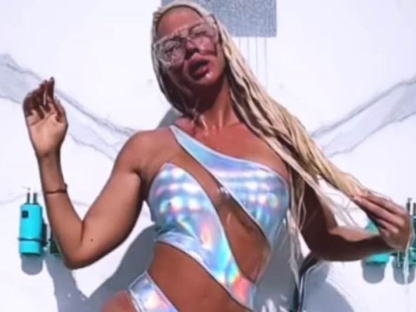 Ovog puta pozirala je u vrlo neobičnom minijaturnom kupaćem kostimu koji je istakao nene atribute i pokazao koliko je pevačica zgodna. Uz to je iskombinovala i štikle u istim svetlucavim nijansama.