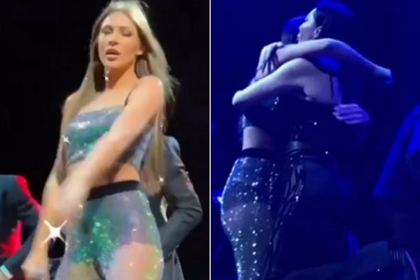 Cecina naslednica je đuskala uz prateće igrače, a u prvom planu su bile njene providne pantalone ispod kojih su se nazirale crne bokserice.