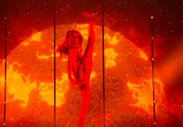 Tokom izvođenja pesme, Blanki Stajkov su prišli prateći igrači i pokidali haljinu, i ostavili je samo u pripijenom miniću. Prvo što je uradila - napravila je špagu stojeći!