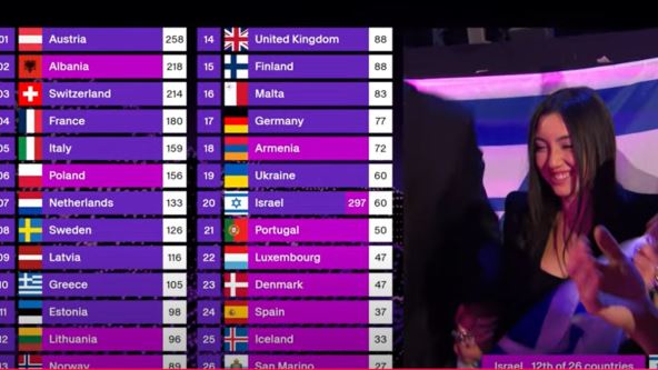 Izraelska pevačica Juval Rafael, koja je na kraju zauzela drugo mesto, prikupila je čak 297 glasova publike - više od bilo kog drugog takmičara.